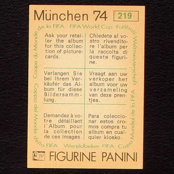 Ladislao Mazurkiewicz Sticker No. 219 Panini - München 74