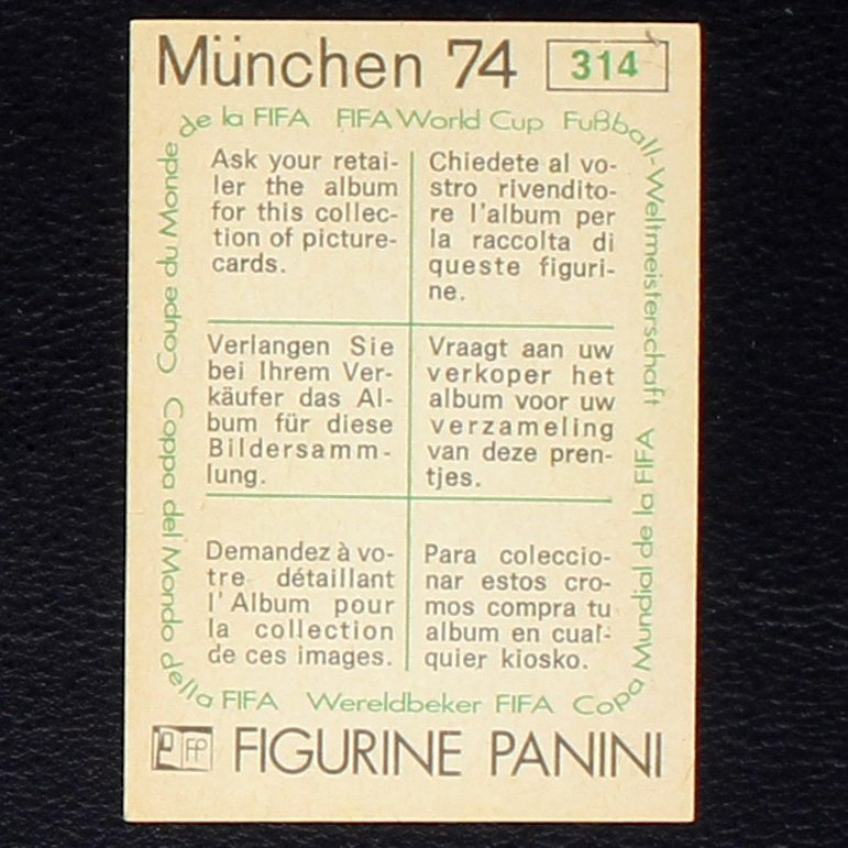 Philippe Vorbe Sticker No. 314 Panini - München 74